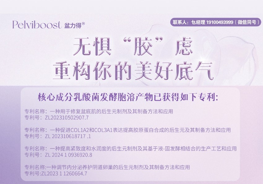 四大專(zhuān)利加持,專(zhuān)利后生元精準(zhǔn)護(hù)盆底:專(zhuān)利技術(shù),終端推廣自帶“權(quán)威信任buff”,無(wú)需復(fù)雜市場(chǎng)教育。