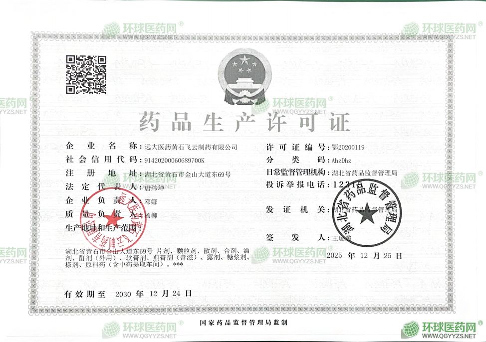 發(fā)證機(jī)關(guān): 湖北省藥品監(jiān)督管理局