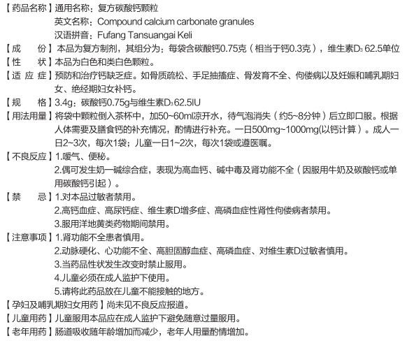 - 本頁面信息僅供參考,請(qǐng)以產(chǎn)品實(shí)際附帶說明書為準(zhǔn)。 力之助 復(fù)方碳酸鈣顆粒 說明書 文字版 【藥品名稱】復(fù)方碳酸鈣顆粒 【