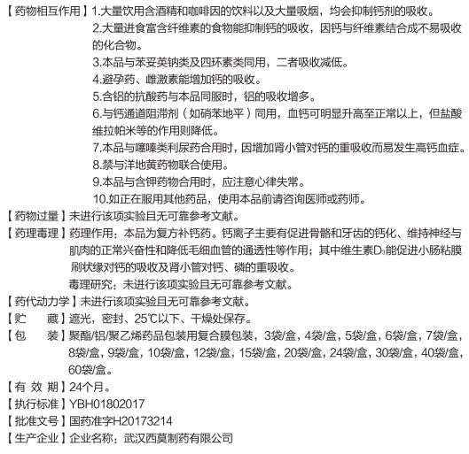 【用法用量】口服。溶于適量溫水,泡騰完全后服用。成人一次1包(以元素鈣計(jì)0.6克),一日1-2次。