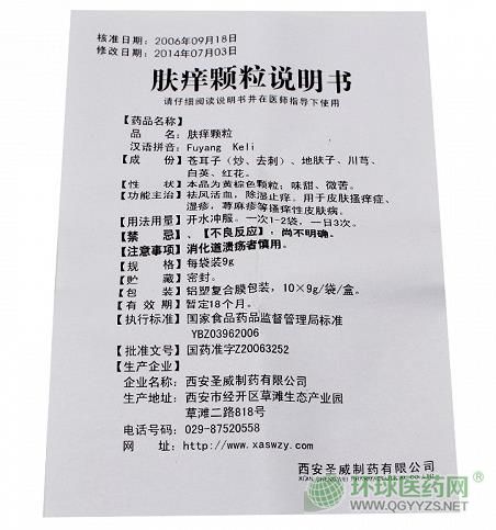 - 本頁面信息僅供參考,請以產(chǎn)品實際附帶說明書為準。 陜西圣威 膚癢顆粒 說明書圖片版 陜西圣威 膚癢顆粒 說明書文字版