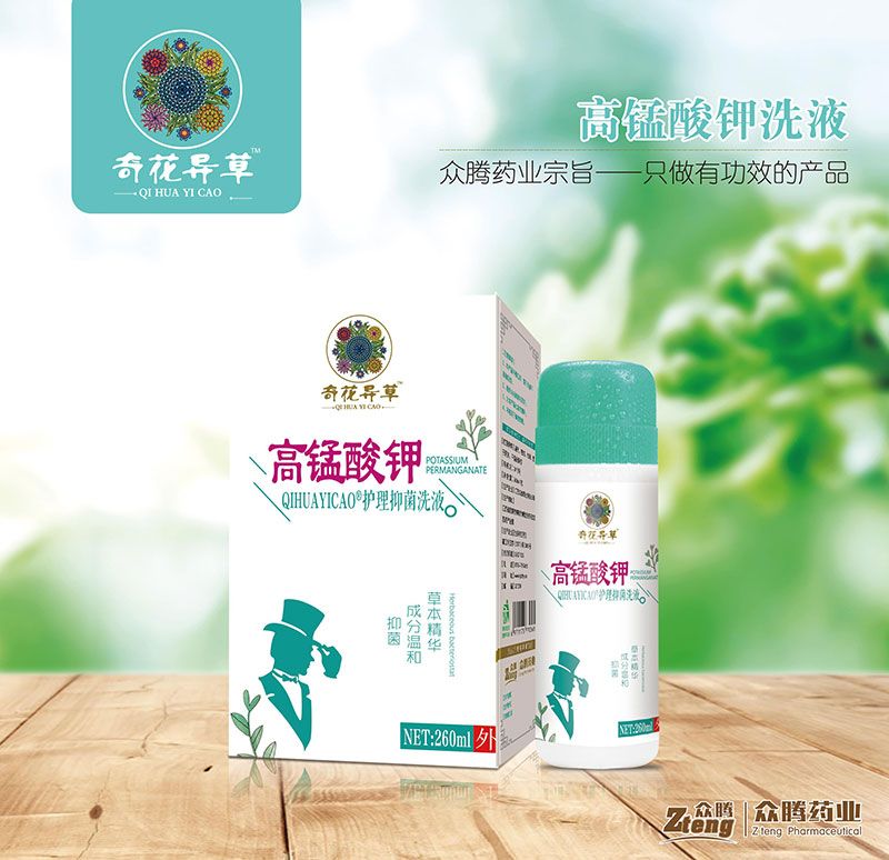 - 【適應(yīng)癥】0.1%水溶液用于沖洗潰瘍、鵝口瘡、膿腫、創(chuàng)面及水果消毒(需新鮮配制)。0.125%用于沖洗陰道或坐浴,治療白帶過(guò)多,痔瘡。0.05%水溶液用于漱口可以除口臭及口腔消毒。1%水溶液用于沖洗毒蛇咬傷的傷口。0.02%水溶液用于洗胃(用于口服巴比妥、嗎啡、水合氯醛、嗎啡、生物堿、氨基比林、有機(jī)農(nóng)藥類(lèi)藥物引起的中毒)。1%水溶液可用于治療皮膚真菌感染。