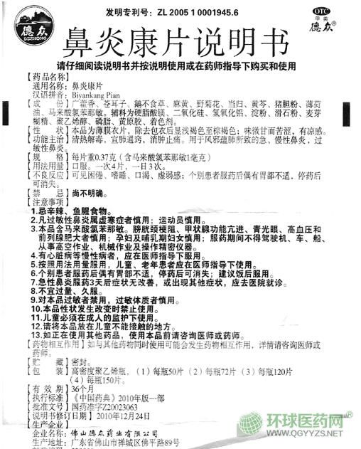 - 國藥佛山德眾鼻炎康片說明書