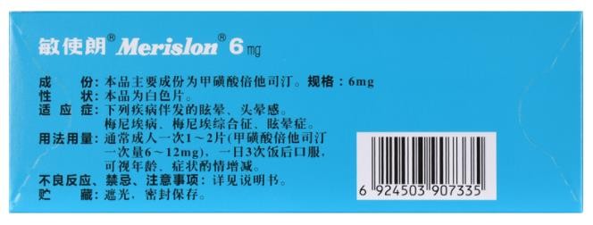 - 本頁面信息僅供參考,請以產(chǎn)品實際附帶說明書為準。 敏使朗(甲磺酸倍他司汀片) 說明書圖片版 敏使朗(甲磺酸倍他司汀