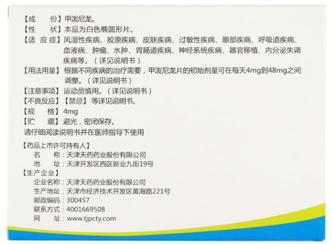 - 本頁面信息僅供參考,請(qǐng)以產(chǎn)品實(shí)際附帶說明書為準(zhǔn)。 天津天藥尤金 甲潑尼龍片 說明書圖片版 天津天藥尤金 甲潑尼龍
