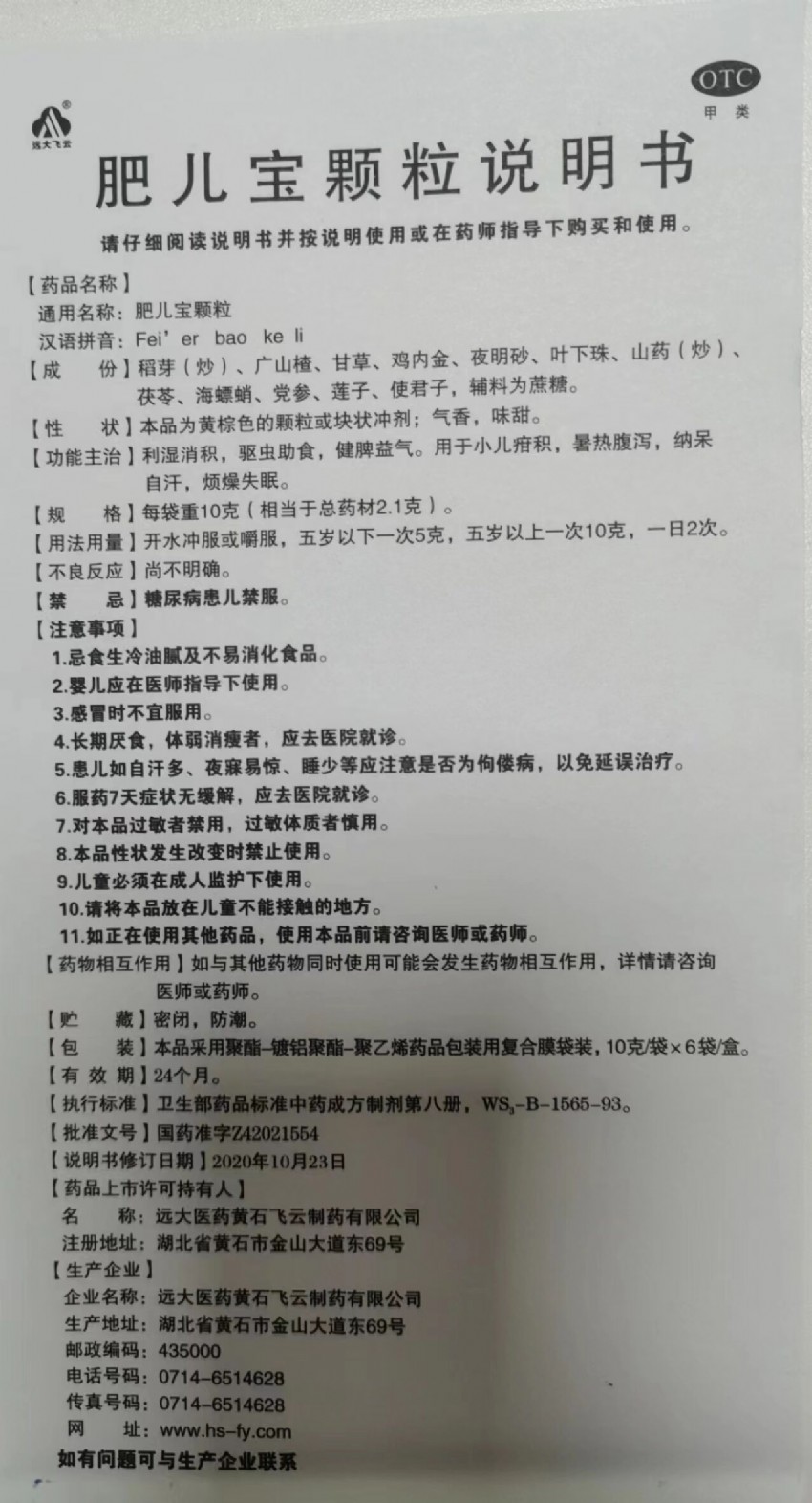 【藥品名稱】通用名稱:肥兒寶顆粒