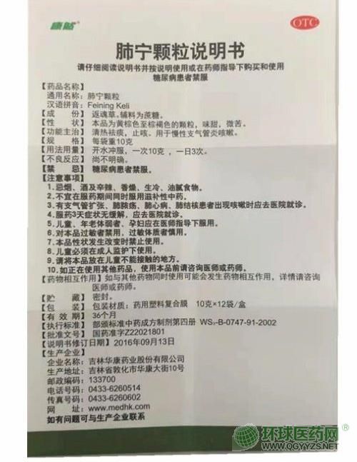 - 本頁(yè)面信息僅供參考,請(qǐng)以產(chǎn)品實(shí)際附帶說明書為準(zhǔn)。 華康 肺寧顆粒 說明書圖片版(2016年版) 華康 肺寧顆粒 說明書文字版