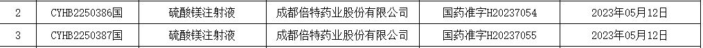 - 5月18日,國(guó)家藥監(jiān)局發(fā)布最新藥品批準(zhǔn)證明文件。 本批共1品種、2品規(guī)藥品通過(guò)一致性評(píng)價(jià),涉及企業(yè)為成都倍特藥業(yè)。 硫酸鎂注射液,可