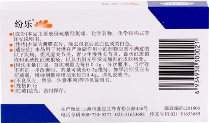 - 本頁(yè)面信息僅供參考,請(qǐng)以產(chǎn)品實(shí)際附帶說(shuō)明書為準(zhǔn)。 紛樂(lè) 硫酸羥氯喹片 說(shuō)明書文字版 商品名:紛樂(lè)® 規(guī)格:0.1g