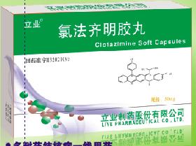【成份】本品主要成份為:氯法齊明。其化學名稱為:10-(對-氯苯基)-2,10-二氫-3-(對-氯苯氨基)-2-異丙亞氨基吩嗪。分子式:C27H22Cl2N4分子量:473.4