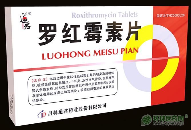 - 本頁面信息僅供參考,請以產(chǎn)品實際附帶說明書為準。 吉林道君藥業(yè) 羅紅霉素片 說明書文字版 【藥品名稱】 通用名:羅紅霉素片