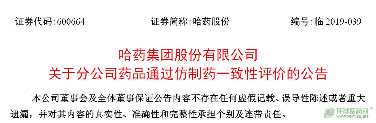 - 這個(gè)藥品,6家過(guò)評(píng)。 ▍又一大品種,通過(guò)一致性評(píng)價(jià) 7月16日,哈藥集團(tuán)股份有限公司發(fā)布《關(guān)于分公司藥品通過(guò)仿制藥一致性評(píng)價(jià)的