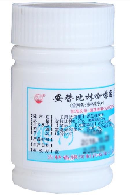 本品為復(fù)方制劑,每片含活性成份為:安替比林0.27g,咖啡因27mg。