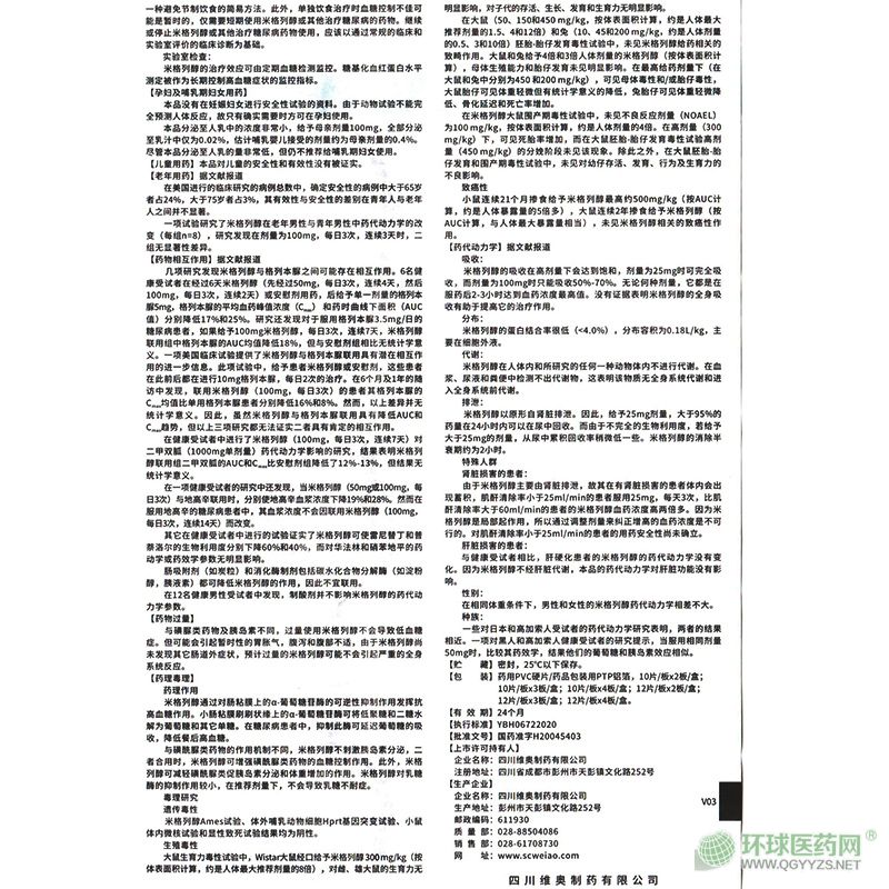 - 本頁(yè)面信息僅供參考,請(qǐng)以產(chǎn)品實(shí)際附帶說(shuō)明書(shū)為準(zhǔn)。 四川維奧制藥米格列醇片 外包裝 四川維奧制藥米格列醇片說(shuō)明書(shū)