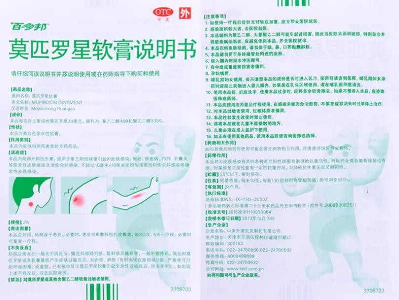【成份】本品每克含主要成份莫匹羅星20毫克。輔料為:聚乙二醇400和聚乙二醇3350。