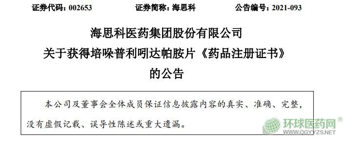 - 首家!海思科「培哚普利吲達(dá)帕胺片」獲批
