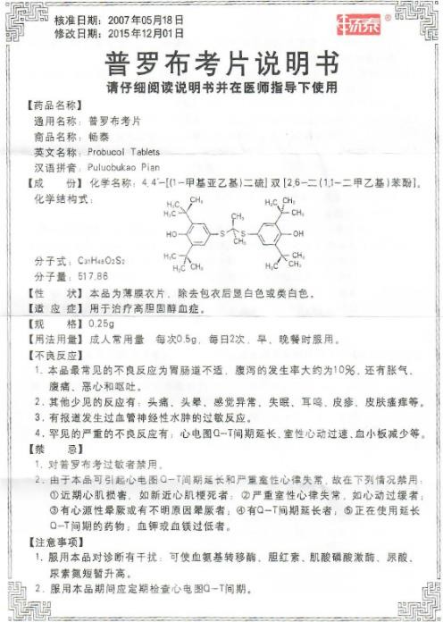 【成份】本品主要成份為普羅布考