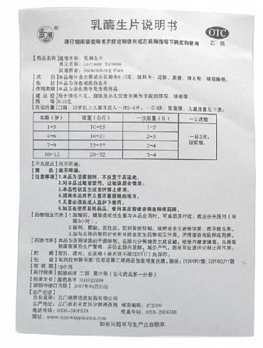 - 本頁面信息僅供參考,請(qǐng)以產(chǎn)品實(shí)際附帶說明書為準(zhǔn)。 三門峽乳酶生片 說明書圖片版 三門峽 乳酶生片 說明書文字版 【