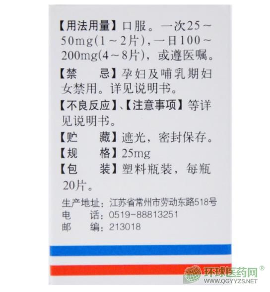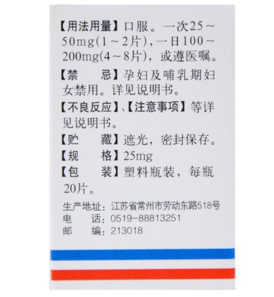 【用法用量】口服。一次25-50mg(1-2片),一日100-200mg(4-8片),或遵醫(yī)囑。