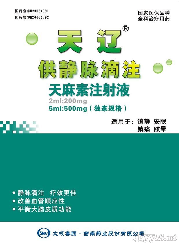 通用名稱:天麻素注射液