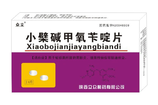 【規(guī)格】每片含鹽酸小檗堿0.1g,甲氧芐啶50mg。