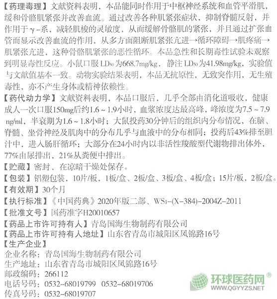 【藥理】文獻資料表明,本品能同時作用于中樞神經(jīng)系統(tǒng)和血管平滑肌,緩和骨骼肌緊張并改善血流。通過改善哉各種肌緊張癥狀抑制脊髓反射,并且通過擴張血管而顯示改善血流的作用,從多方面陰斷緊張亢進→循環(huán)障礙→肌疼痛→肌緊張亢進,這種骨骼肌的惡性循環(huán)。