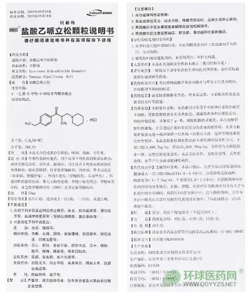 - 本頁面信息僅供參考,請以產(chǎn)品實際附帶說明書為準。 貝格斯鹽酸乙哌立松片包裝 貝格斯鹽酸乙哌立松片 說明書圖片