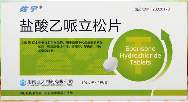 西藥、處方藥、醫(yī)保乙類。中樞性肌肉松馳藥。用于改善下列疾病的肌緊張狀態(tài):頸背肩臂綜合癥,肩周炎,腰痛癥;用于改善下列疾病所致的痙攣性麻痹:腦血管障礙,痙攣性脊髓麻痹,頸椎病,手術后遺癥(包括腦、脊髓腫瘤),外傷后遺癥(脊髓損傷、頭部外傷),肌萎縮性側索硬化癥,嬰兒大腦性輕癱,脊髓小腦變性癥,脊髓血管障礙,亞急性脊髓神經(jīng)癥(SMON)及其它腦脊髓疾病。有多家企業(yè)生產(chǎn)。目前多家企業(yè)在環(huán)球醫(yī)藥網(wǎng)招商。【藥品名稱】通用名稱:鹽酸乙哌立松片