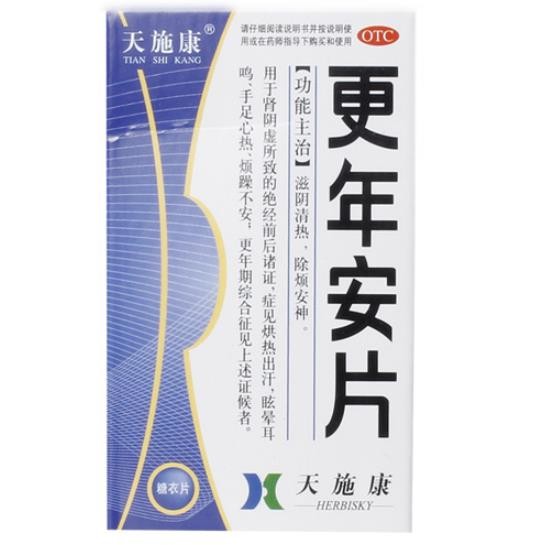 - 本頁面信息僅供參考,請(qǐng)以產(chǎn)品實(shí)際附帶說明書為準(zhǔn)。 天施康更年安片 包裝 天施康更年安片使用說明書 【藥品名稱】通用
