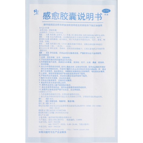 - 本頁面信息僅供參考,請(qǐng)以產(chǎn)品實(shí)際附帶說明書為準(zhǔn)。 修正感愈膠囊說明書外包裝圖片 修正 感愈膠囊 說明書 【藥品名稱】