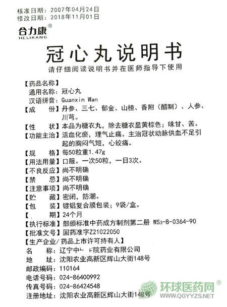 通用名稱:冠心丸