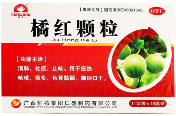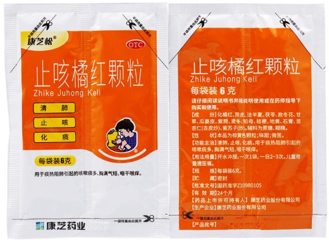 中成藥、雙跨藥、醫(yī)保甲類。清肺,化痰,止咳。用于痰熱咳嗽,痰多,色黃黏稠,胸悶口干。多家企業(yè)生產(chǎn)。目前盛瑞藥業(yè)集團、沈陽天行健醫(yī)藥有限公司、吉林省今世康藥業(yè)有限公司、吉林省赫陽藥業(yè)有限公司等企業(yè)在環(huán)球醫(yī)藥網(wǎng)招商。【藥品名稱】通用名稱:橘紅顆粒