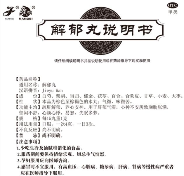 - 本頁面信息僅供參考,請以產(chǎn)品實(shí)際附帶說明書為準(zhǔn)。 康祺 解郁丸 說明書圖片版 康祺解郁丸 說明書文字版 【藥品名