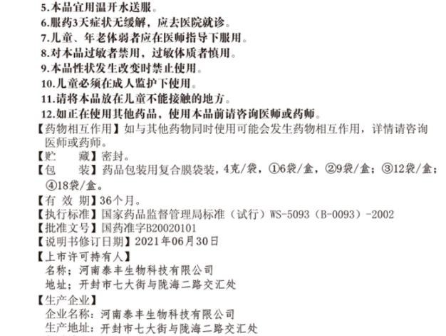【用法用量】口服,一次4克,一日3次。