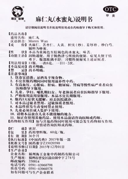 - 本頁面信息僅供參考,請以產(chǎn)品實(shí)際附帶說明書為準(zhǔn)。 海王 麻仁丸 說明書文字版 見以下圖片版 海王 麻仁丸 說明書圖片版