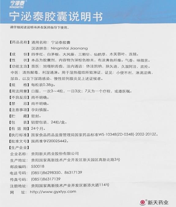 - 本頁面信息僅供參考,請以產(chǎn)品實際附帶說明書為準(zhǔn)。 貴陽新天藥業(yè)寧泌泰膠囊使用說明書圖片版 貴陽新天藥業(yè) 寧泌泰膠囊 使用說