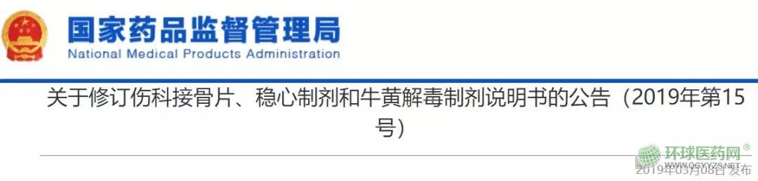 - 這個常用藥,3類人禁用。 3月8日,國家藥監(jiān)局發(fā)布《關于修訂傷科接骨片、穩(wěn)心制劑和牛黃解毒制劑說明書的公告(2019年第15號)》(