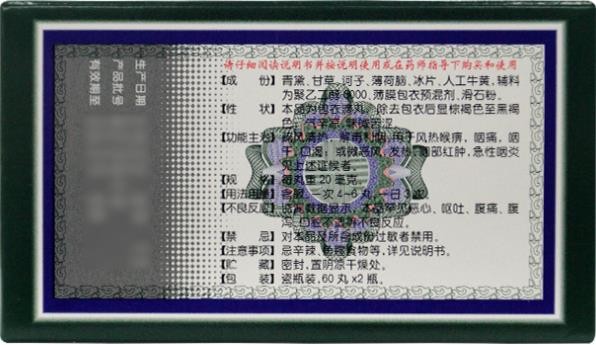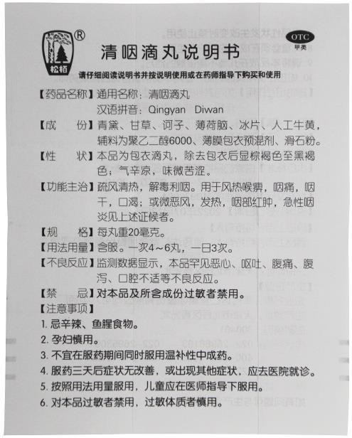 中成藥、OTC甲類、醫(yī)保甲類。疏風(fēng)清熱,解毒利咽。用于風(fēng)熱喉痹,咽痛,咽干,口渴;或微惡風(fēng),發(fā)熱,咽部紅腫,急性咽炎見上述證候者。由天津中新藥業(yè)集團股份有限公司第六中藥廠(現(xiàn)改名為:津藥達(dá)仁堂集團股份有限公司第六中藥廠)生產(chǎn)。目前在環(huán)球醫(yī)藥網(wǎng)招商。【藥品名稱】通用名稱:清咽滴丸