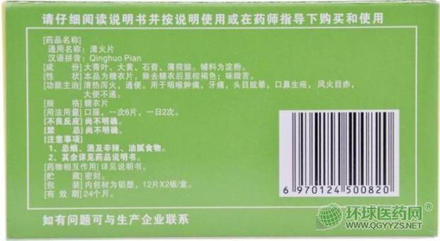 - 本頁(yè)面信息僅供參考,請(qǐng)以產(chǎn)品實(shí)際附帶說(shuō)明書(shū)為準(zhǔn)。 廣西維威 清火片 說(shuō)明書(shū)圖片版 廣西維威 清火片 說(shuō)明書(shū)文字版 【藥