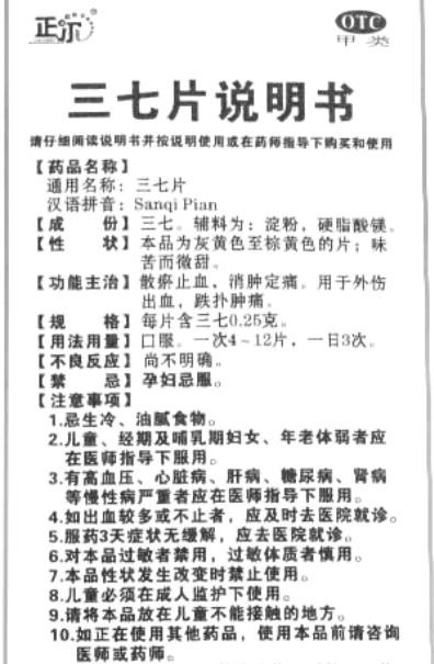 - 同仁堂三七片說明書