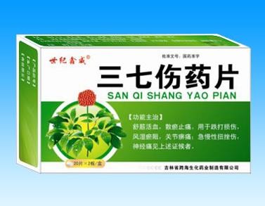 中成藥、處方藥、醫(yī)保甲類。舒筋活血,散瘀止痛。用于跌打損傷,風(fēng)濕瘀阻,關(guān)節(jié)痹痛;急慢性扭挫傷,神經(jīng)痛見上述證候者。多家企業(yè)生產(chǎn)。吉林省鑫澤源藥業(yè)有限公司、吉林省世紀(jì)鑫威醫(yī)藥有限公司、河南省順康醫(yī)藥有限責(zé)任公司、鄭州瑞龍國(guó)藥醫(yī)藥股份有限公司、吉林省百源康醫(yī)藥有限公司在環(huán)球醫(yī)藥網(wǎng)招商。【藥品名稱】通用名稱:三七傷藥片