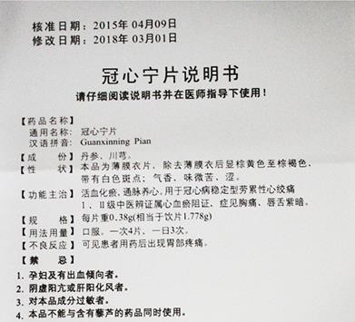 中成藥、處方藥、非醫(yī)保。活血益氣,宣暢心陽,疏通心脈,蠲除瘀阻。用于胸痹或心脈瘀阻所致之胸悶、心痛、氣促、心悸等癥。云南維和藥業(yè)股份有限公司生產(chǎn)。目前在環(huán)球醫(yī)藥網(wǎng)招商。【藥品名稱】通用名稱:三七冠心寧片