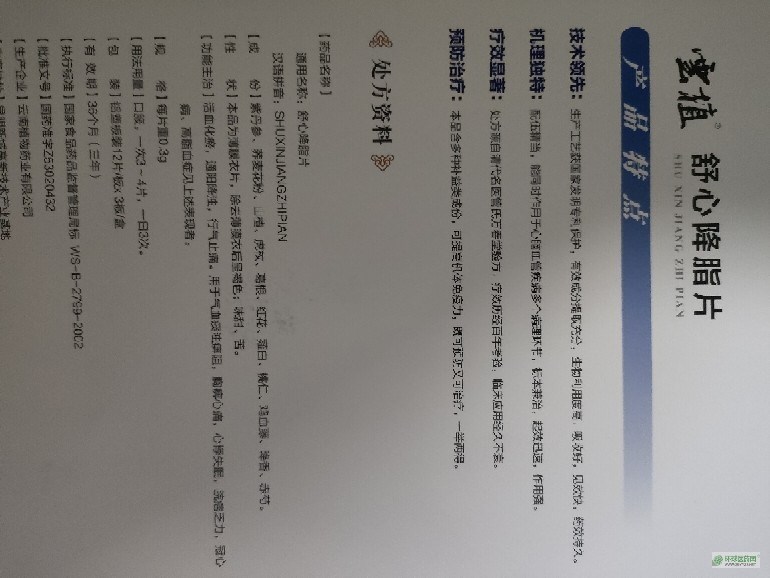 舒心降脂片