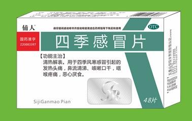 中成藥、OTC甲類、非醫(yī)保。清熱解表。用于四季風(fēng)寒感冒引起的發(fā)熱頭痛,鼻流清涕,咳嗽口干,咽喉疼痛,惡心厭食。招商廠家:吉林省圣達(dá)藥業(yè)有限公司、盛瑞藥業(yè)集團(tuán)、湖北大唐盛世醫(yī)藥有限公司、沈陽天行健醫(yī)藥有限公司等等。【藥品名稱】通用名稱:四季感冒片