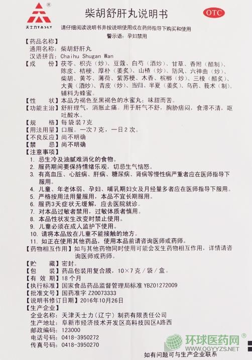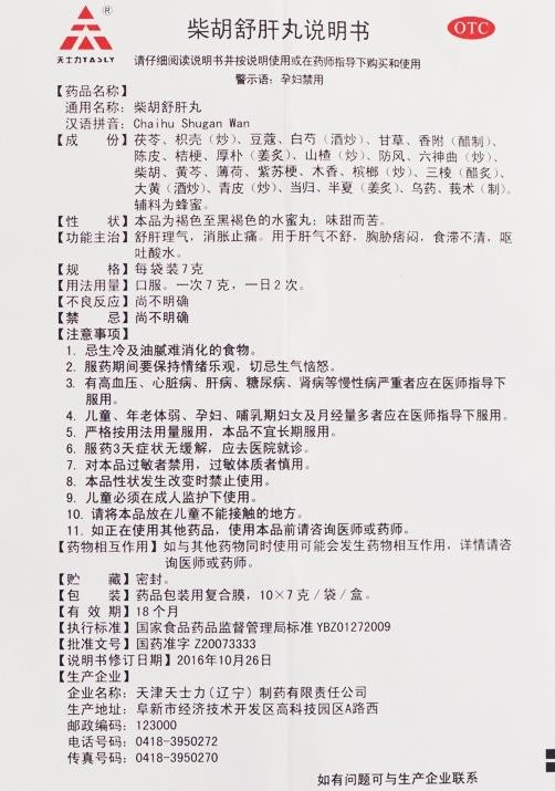- 天士力柴胡舒肝丸說明書
