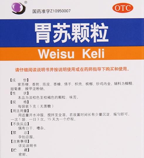 中成藥、OTC甲類、醫(yī)保甲類。理氣消脹,和胃止痛。主治氣滯型胃脘痛,癥見胃脘脹痛,竄及兩脅,得噯氣或矢氣則舒,情緒郁怒則加重,胸悶食少,排便不暢及慢性胃炎見上述證候者。揚(yáng)子江藥業(yè)集團(tuán)江蘇制藥股份有限公司生產(chǎn)。目前在環(huán)球醫(yī)藥網(wǎng)招商。【藥品名稱】通用名稱:胃蘇顆粒