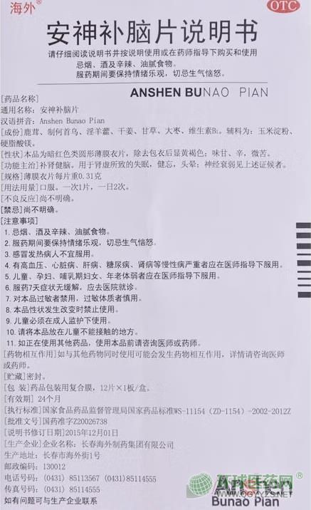 - 安神補(bǔ)腦片長(zhǎng)春海外說明書
