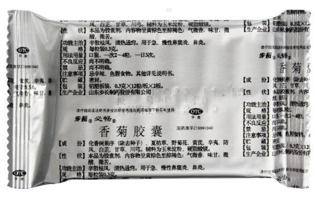 中成藥、OTC甲類、醫(yī)保甲類。辛散祛風,清熱通竅。用于急、慢性鼻竇炎,鼻炎。由山東步長制藥股份有限公司生產(chǎn),批準文號:國藥準字Z19991040。目前山東步長制藥股份有限公司在環(huán)球醫(yī)藥網(wǎng)招商。【藥品名稱】通用名稱:香菊膠囊