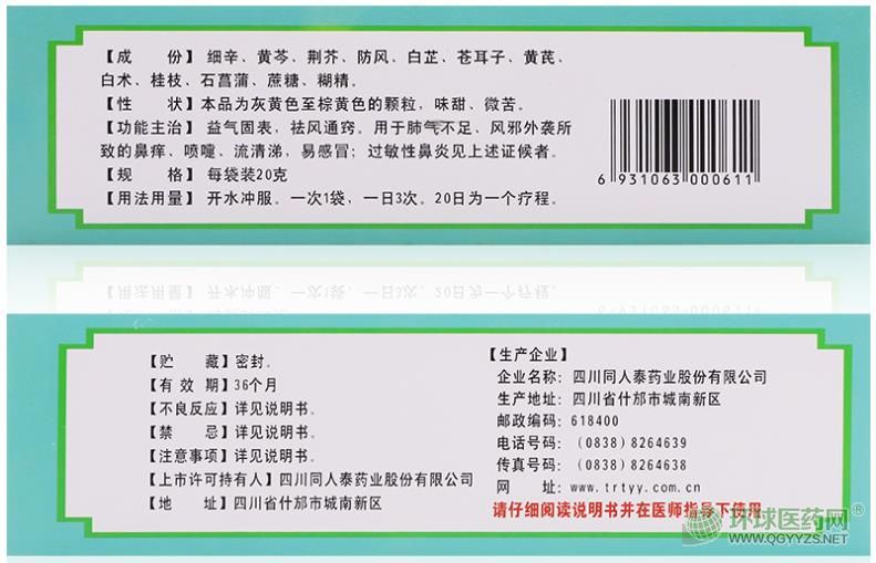 【成份】細(xì)辛、黃芩、蒼耳子、白芷、荊芥、防風(fēng)、石菖蒲、白術(shù)、桂枝、黃芪。