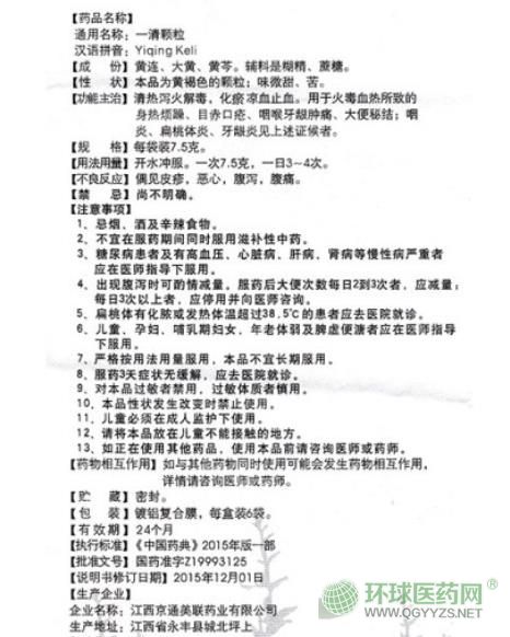 - 本頁面信息僅供參考,請以產(chǎn)品實際附帶說明書為準(zhǔn)。 江西京通美聯(lián) 一清顆粒 說明書圖片版 江西京通美聯(lián)一清顆粒 說明書文字版